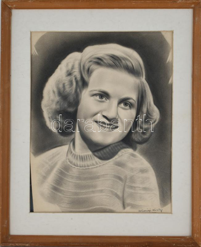 Hídvégi Károly (-): Fiatal hölgy arcképe, 1956. Ceruza, papír, jelzett. Fakeretben. 39×30 cm.