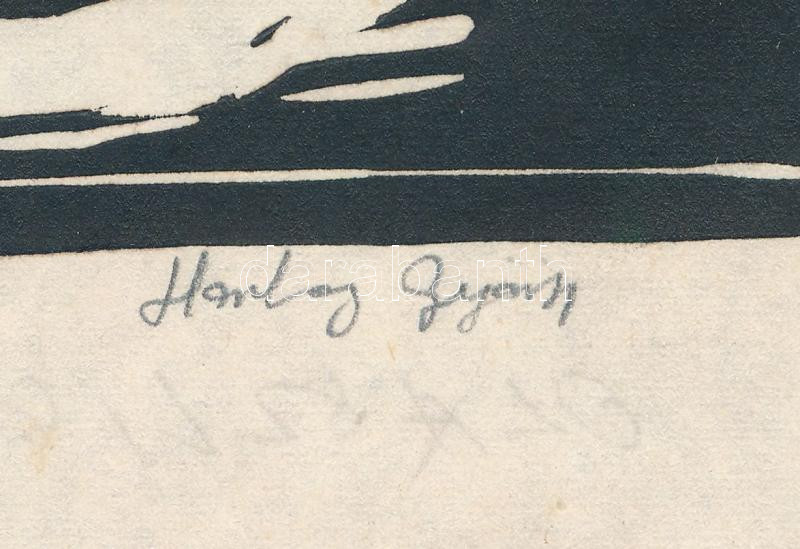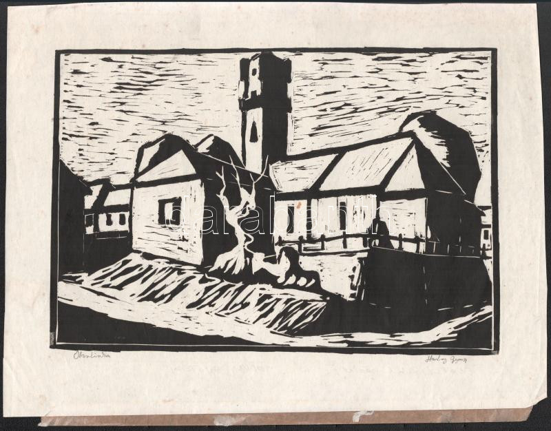 Horkay György (1934-2017): Olaszliszkai részlet II. Linómetszet, papír. Jelzett. Lap szélén paszpartuzás nyomaival. Egészen apró foltokkal. Lapszéli apró szakadással. 21x31 cm