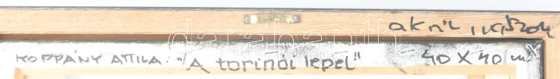 Koppány Attila (1947-): A torinói lepel. Akril, vászon. Jelzett a hátoldalán. 40x40 cm.
