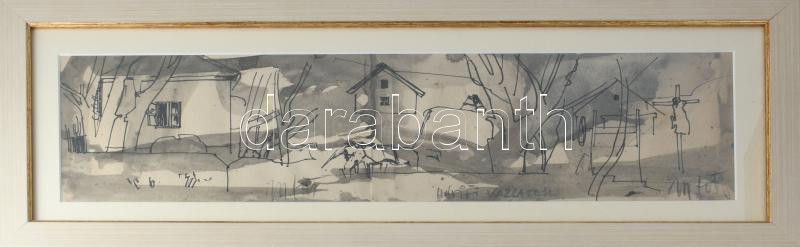 M.Tóth István (1922-2006): Hévizi vázlatok. Lavírozott tus, papír, jelzett, üvegezett fakeretben, 16×60 cm. Üvegezett fakeretben.