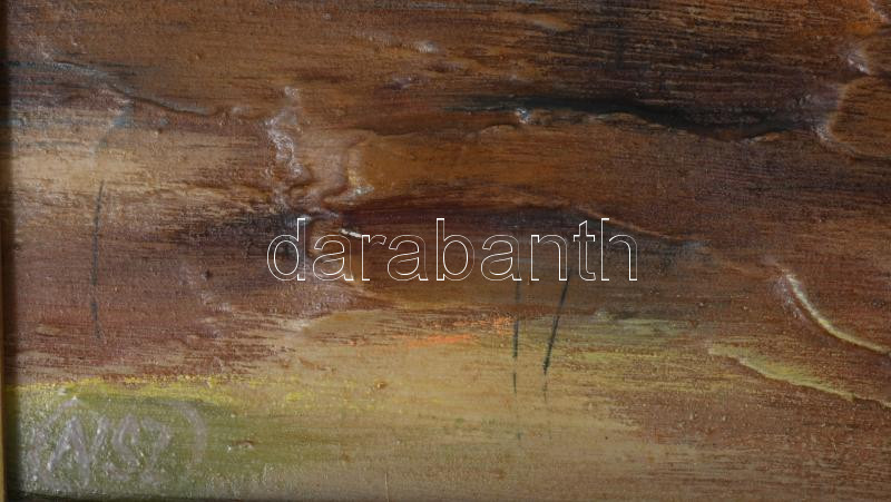 Nánay Szilamér (1952-): Őszi alkony. Olaj, farost, jelzett, hátoldalán a művész autográf ajándékozási soraival. Apró felületi sérülésekkel. Fakeretben, 30×40 cm