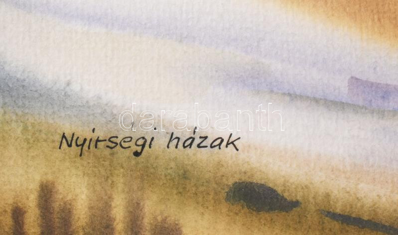 Osváth Miklós (1935-2004): Nyírségi házak, Akvarell, papír, jelzett és datált. 41x56 cm