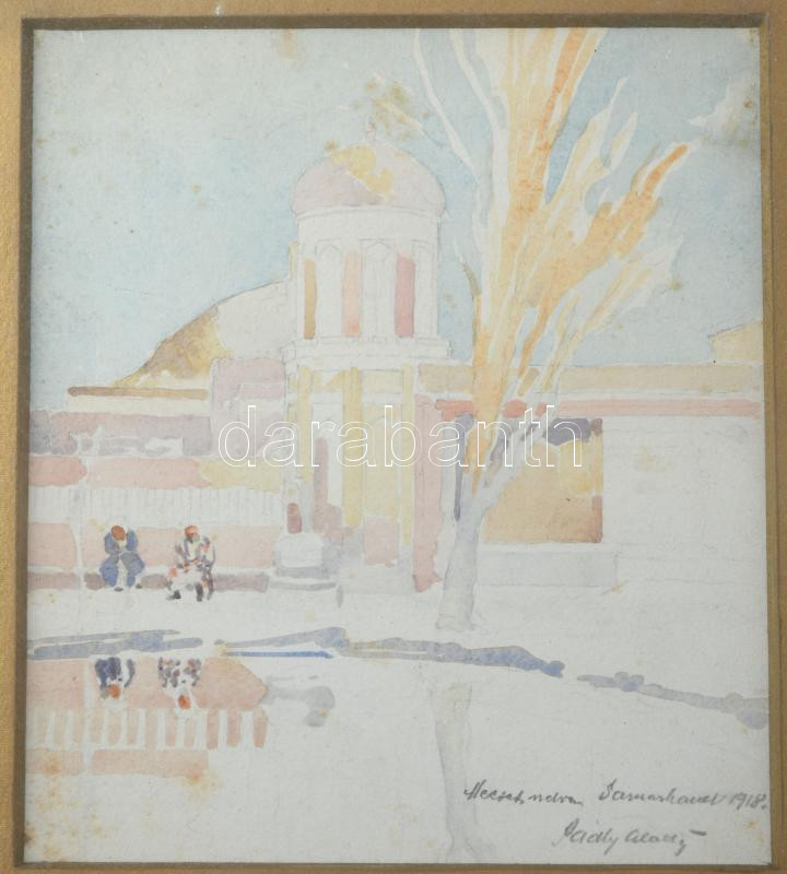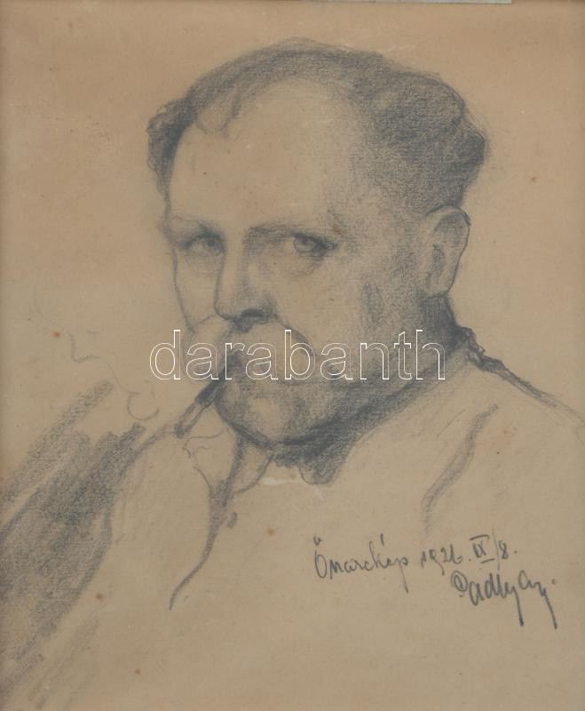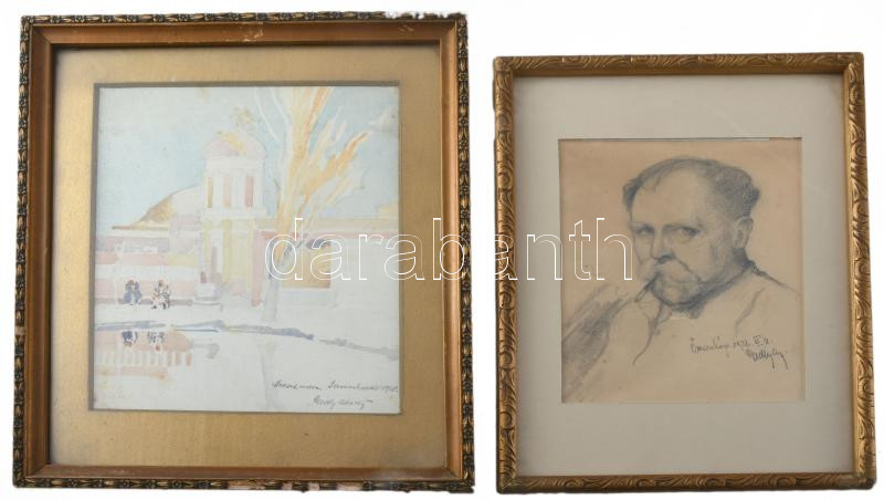 Pádly Aladár (1881-1949): 2 db mű: Önarckép. Ceruza, papír, 16x13cm, Samarkand festőiskola. (Az I. világháborús hadifogságban festette) Akvarell, papír. jelezve jobbra lent. üvegezett, fakeretben, 22x16 cm