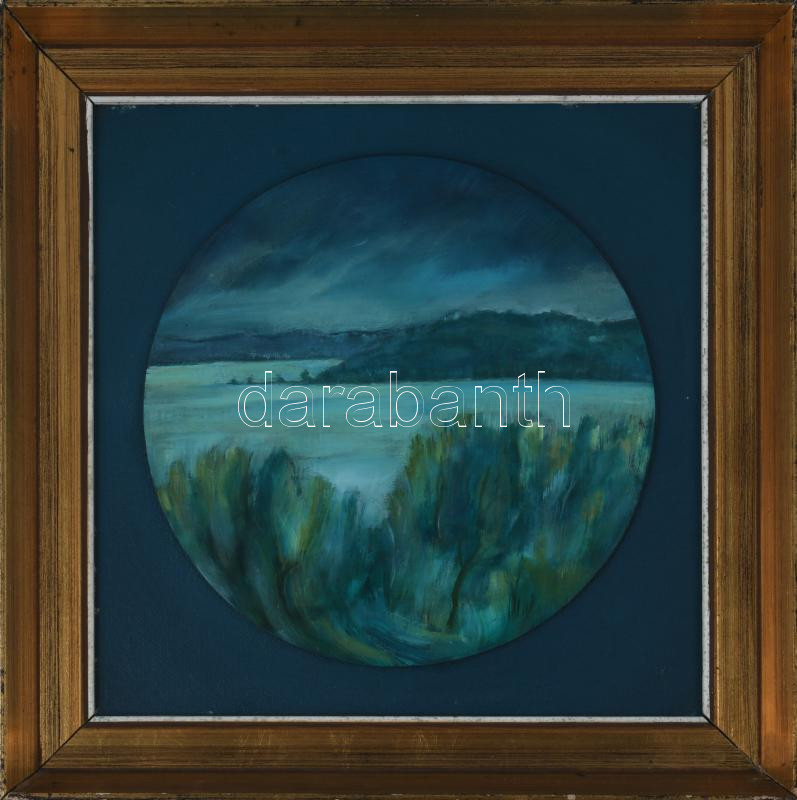 Pálffy Károly (1949-): Vihar után. Olaj, farost. Jelzett a hátoldalán. Fakeretben. d: 30 cm.