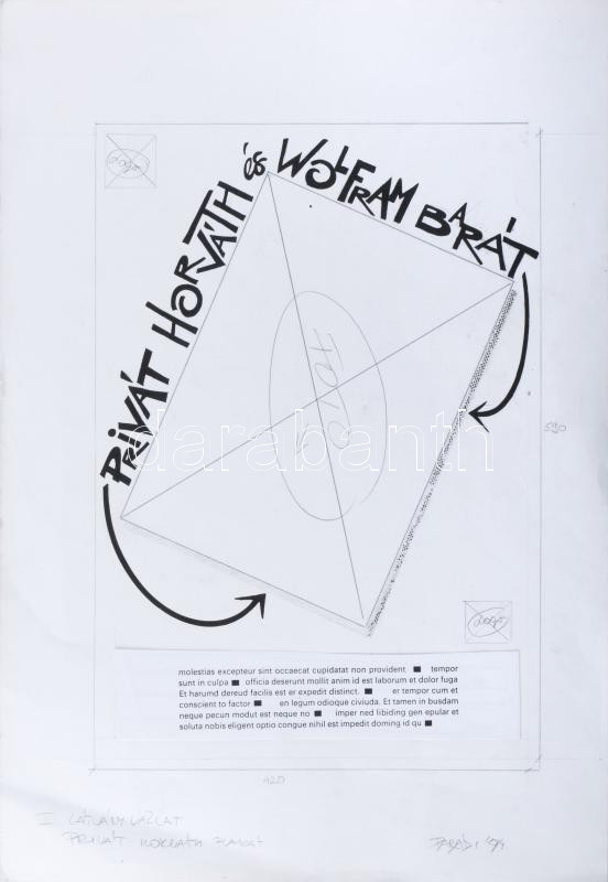 Parádi Tamás (1956-): Privát Horváth és Wolfram barát plakát terv. Ceruza. tus, kollázs. Jelzett 45x30 cm