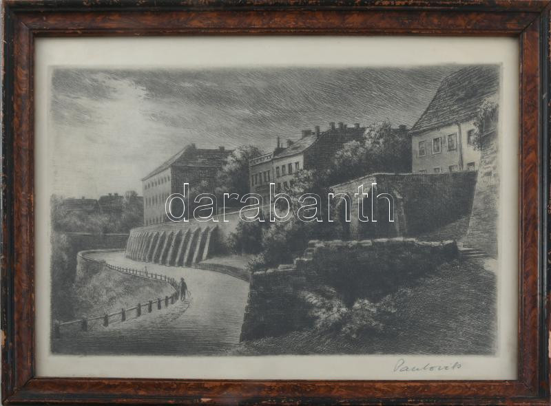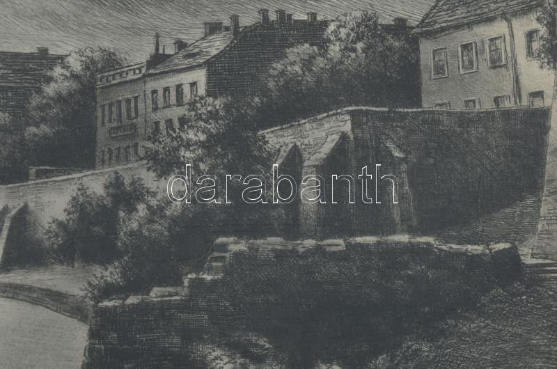 Paulovits Pál (1892-1975): Veszprémi vár. Rézkarc, papír, jelzett, 20×29 cm