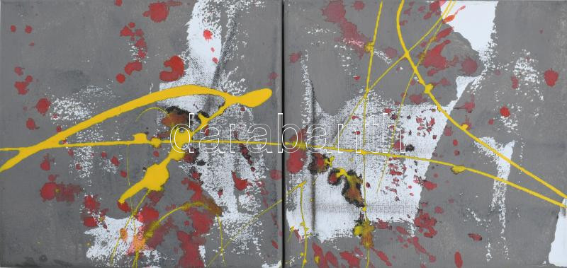 Puha Ferenc (1951-): Diptichon. Akril, vászon, jelzett a hátoldalán. Két darabból álló mű. 20×20x2 (20x40) cm.