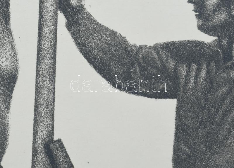 Sáros András Miklós (1945-): A ,ezőgazdaság szocialista átszervezése. Rézkarc, papír, jelzett, 30x40 cm