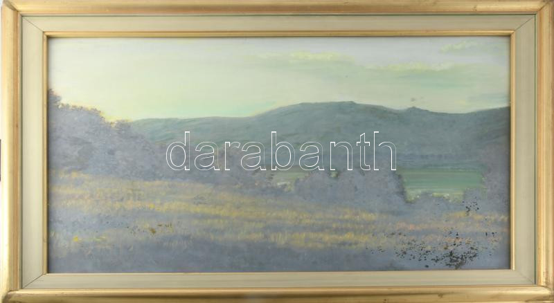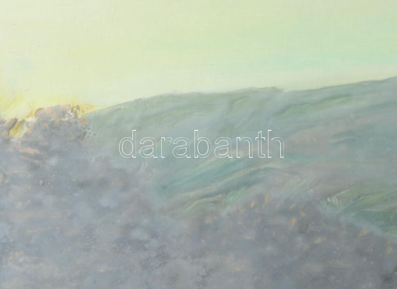 Szabó Lajos (1927-1995): Dunántúli táj. Olaj, farost, jelzett. Hátoldalán Képcsarnok Vállalat címkéjével. Üvegezett fakeretben, 50x65 cm
