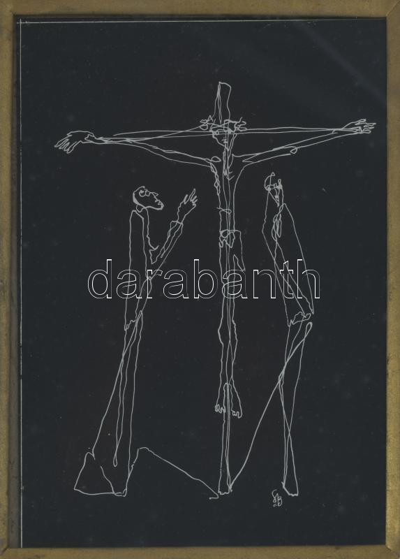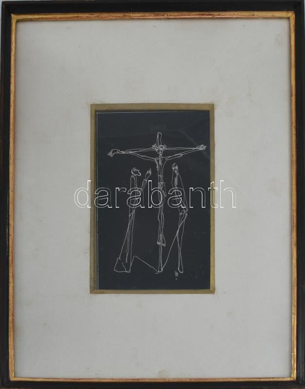 Szappanyos Béla (1930-1964): Krisztus a kereszten. Vegyes technika, karton. Jelzett. Üvegezett fakeretben. 18x11,5 cm