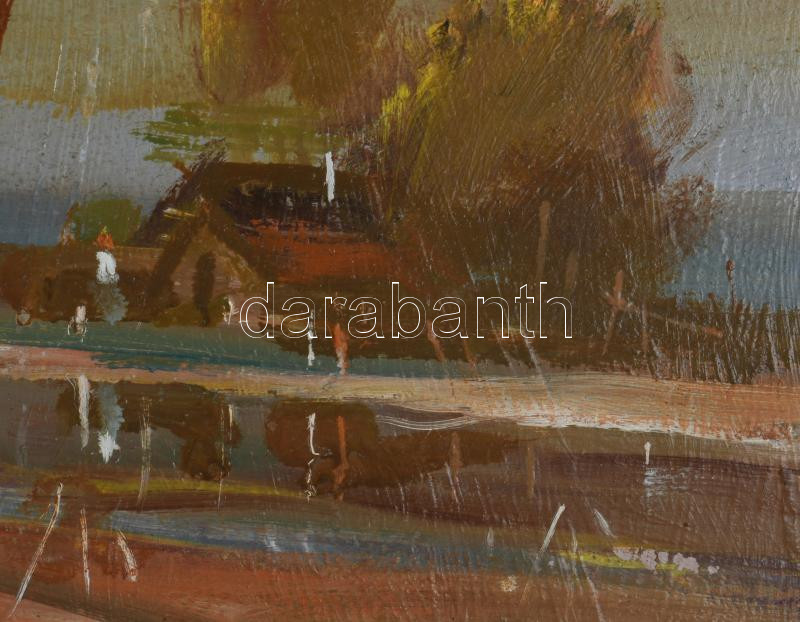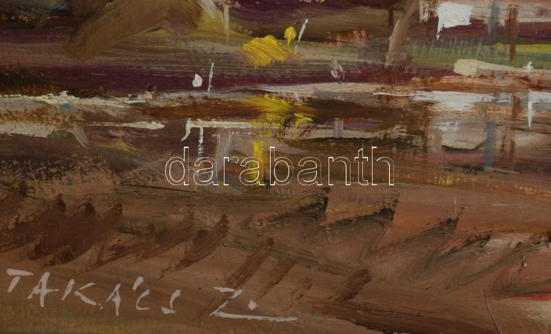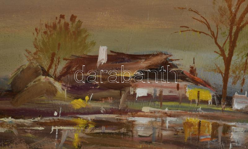 Takács Zoltán (?-): Szentesi tanya. Olaj, farost. Jelzett. Fakeretben. 19x29 cm