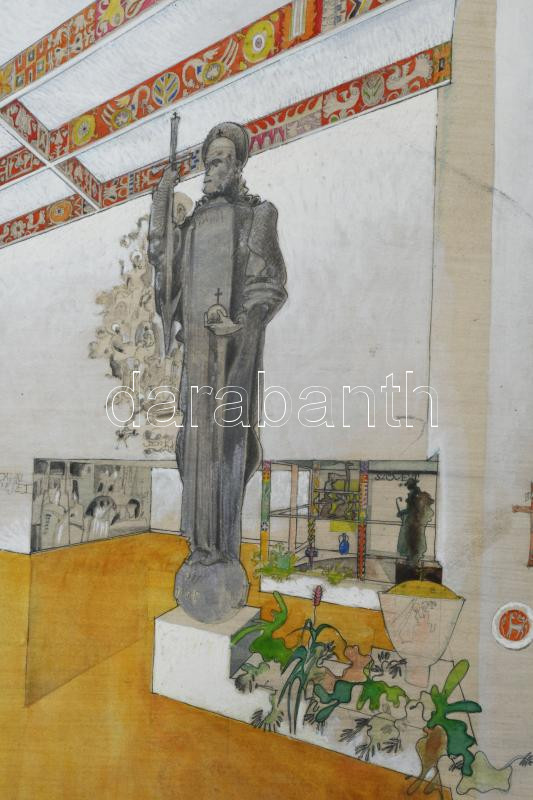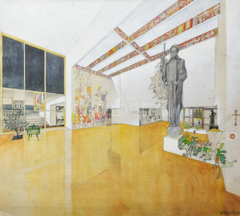 Tálos Gyula (1887-1975): Art deco enteriőr terve, ca. 1930. Akvarell, karton. jelzett. 35x36 cm