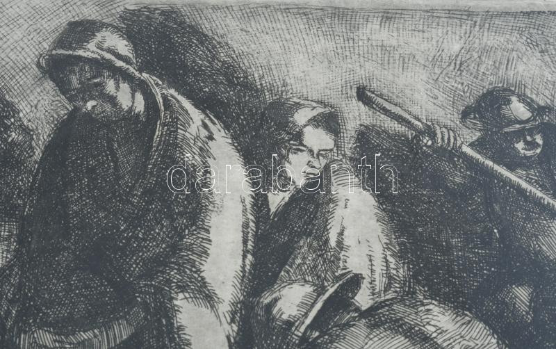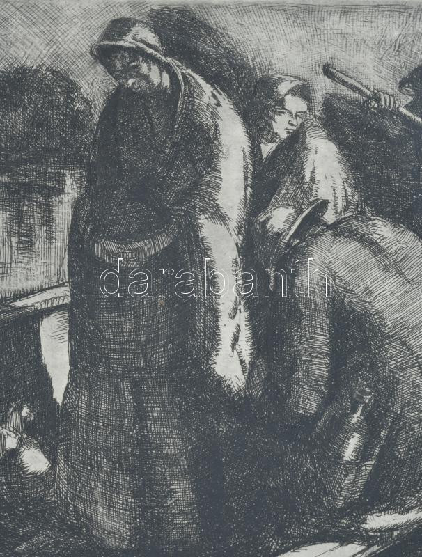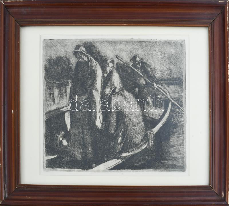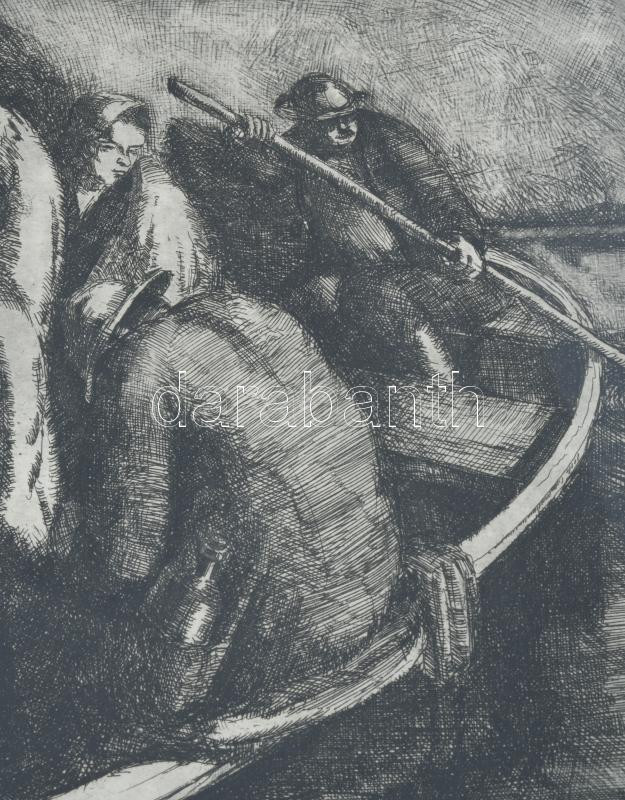 Toroczkai Oszvald (1884-1951): Tiszai átkelés. Rézkarc, papír. Jelzés nélkül. Üvegezett, kissé kopott fakeretben. 20x25 cm