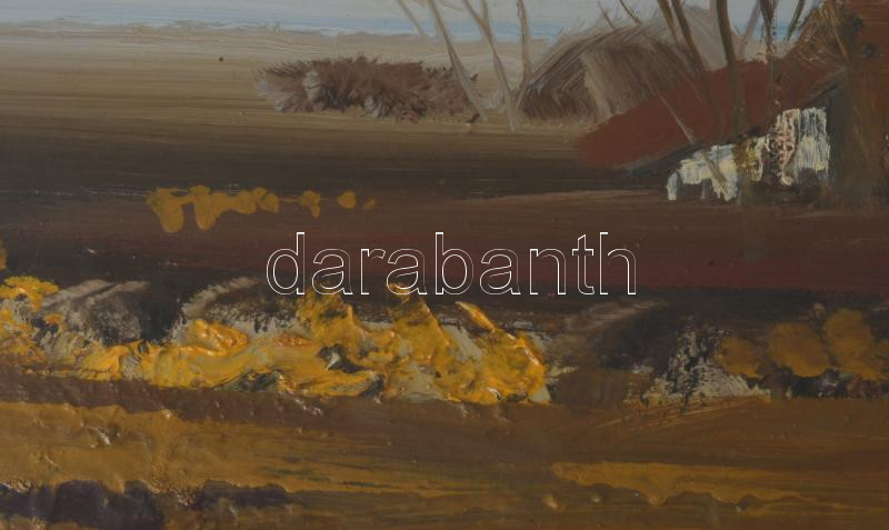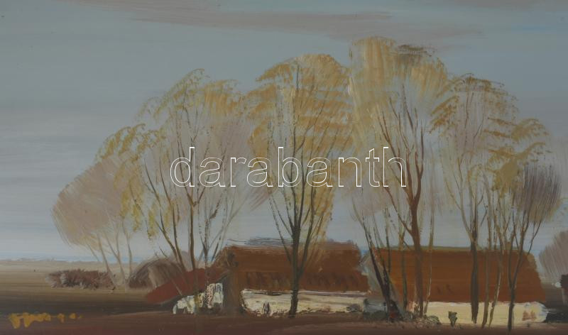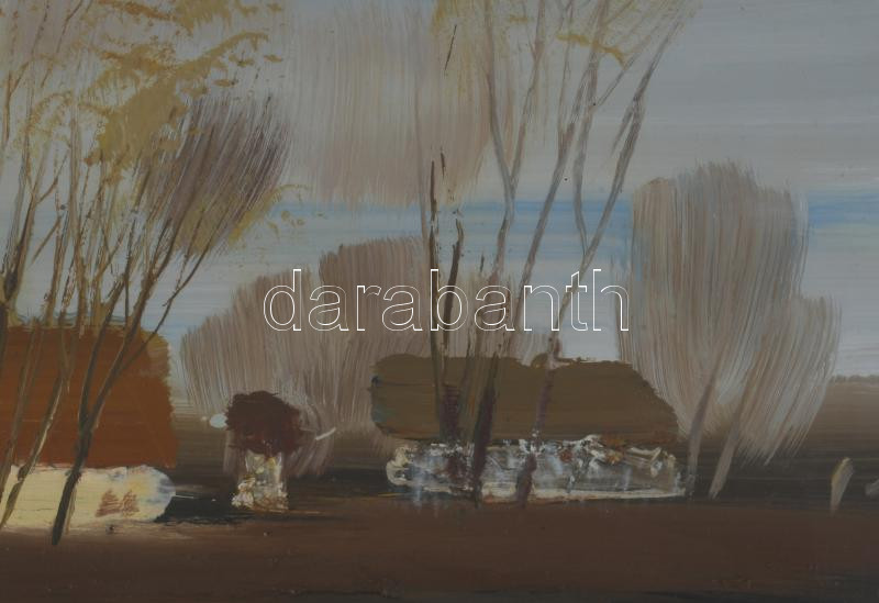 Ugocsai Antal (1942-): Alföldi részlet. Olaj, farost, jelezve jobbra középen, 40×70 cm. Üvegezett fakeretben.