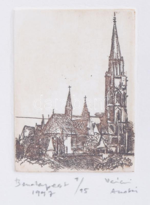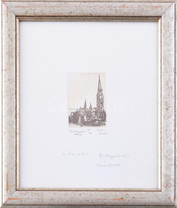 Váczi András (1967- ): Budapest. Rézkarc, papír. 5x6 cm jelzett, számozott, üvegezett keretben.