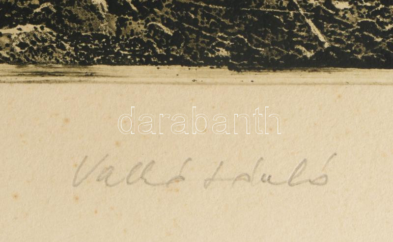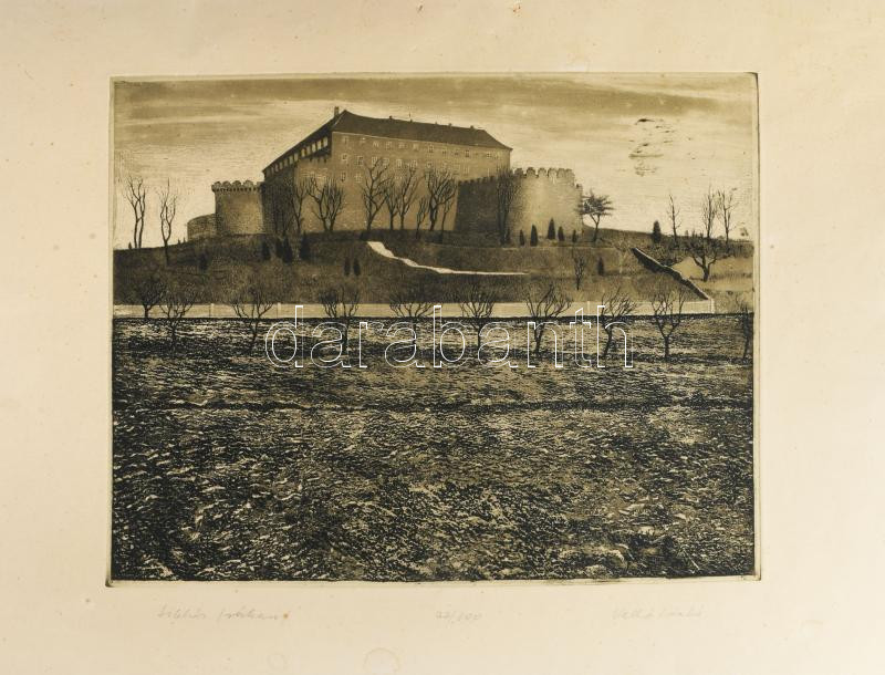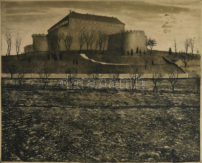Valkó László (1946-): Siklós. Rézkarc, papír, jelzett, 29×36 cm. Lapszéli ázásnyommal.