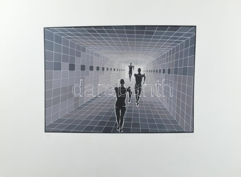 Vasarely jelzéssel: Geometrikus kompozíció a Sport mappából. Szitanyomat, papír. 28x42 cm.
