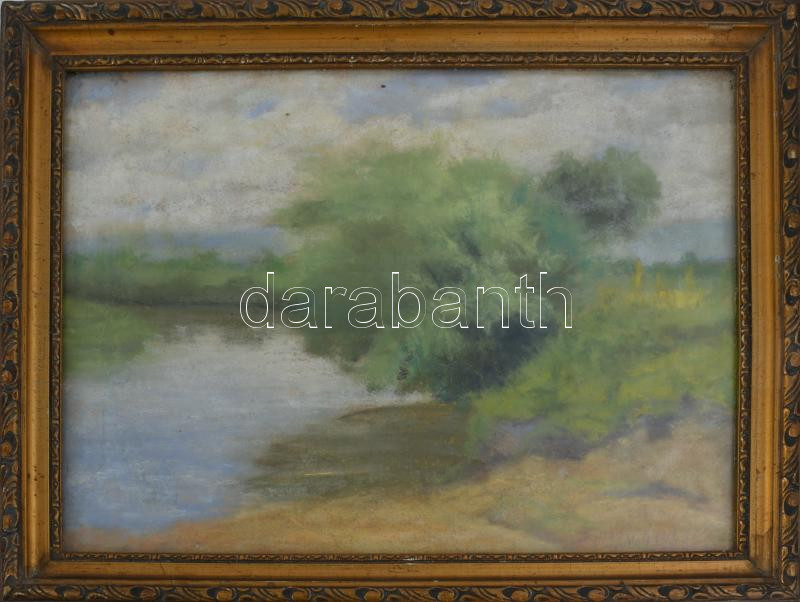 Agházy Gyula jelzéssel: Vízparti táj. Pasztell, papír. Üvegezett fakeretben. 24,5x32,5 cm