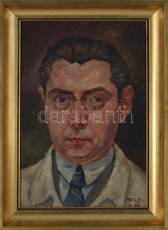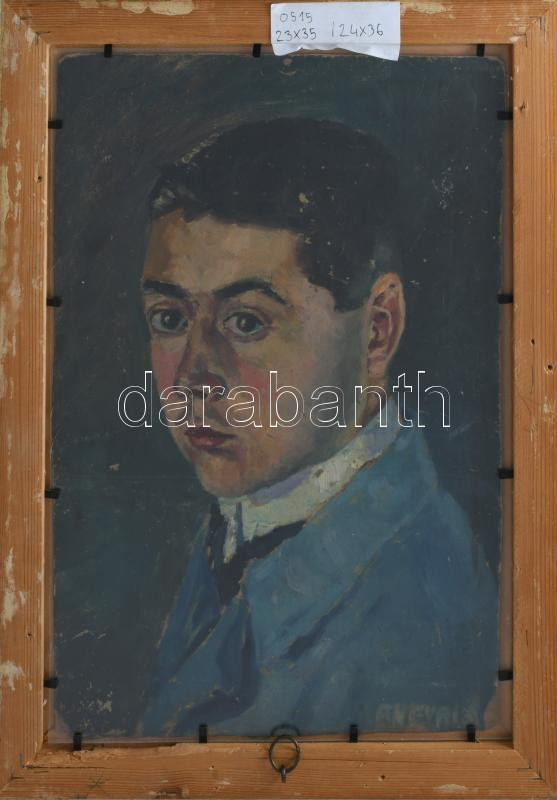 Angyal jelzéssel (a hátoldalán): Férfi arckép. Olaj, karton. Kétoldalas mű, hátoldalén férfi arckép. Üvegezett fakeretben. 36x24 cm.