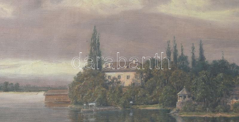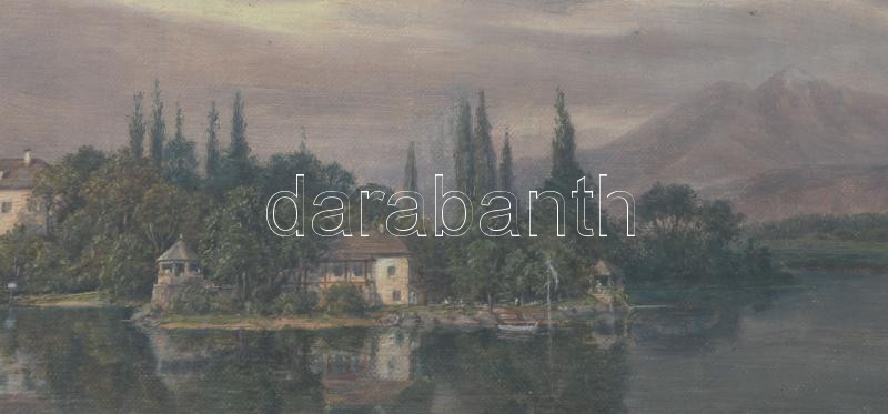Azonosítatlan jelzéssel: Alpesi falu. Olaj, karton, jelzett, üvegezett keretben 19x40 cm
