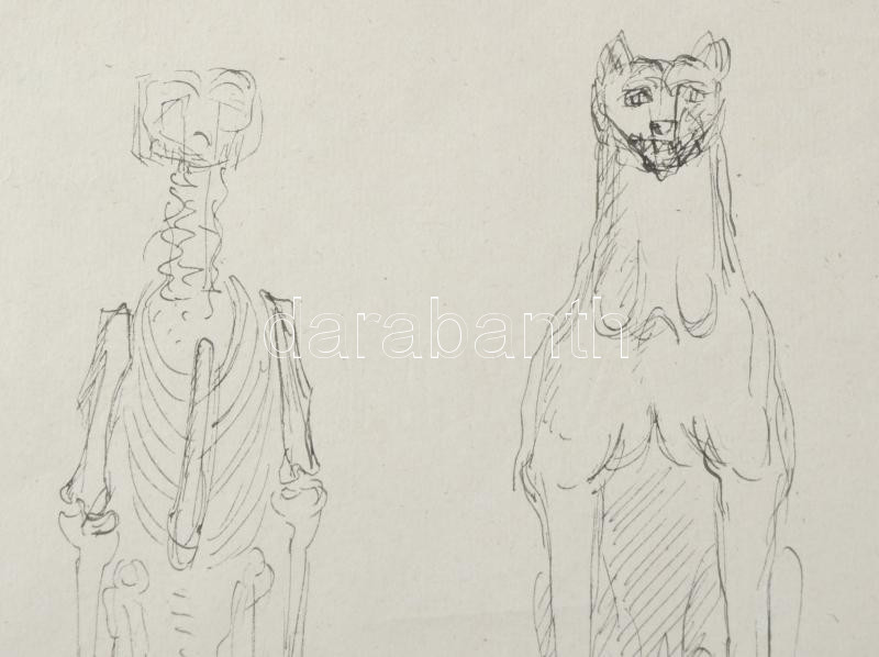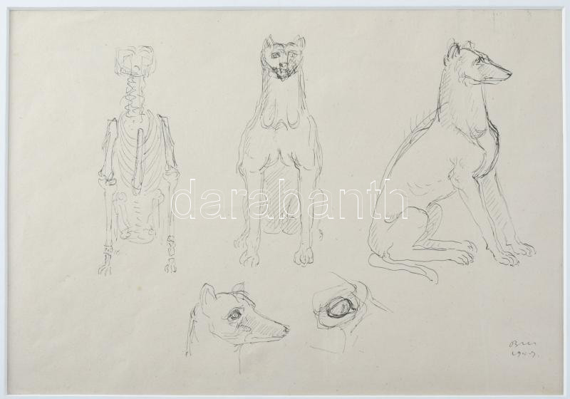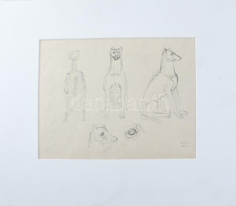Azonosítatlan jelzéssel: Kutya vázlatok. Tus, papír, paszpartuban 21x26 cm