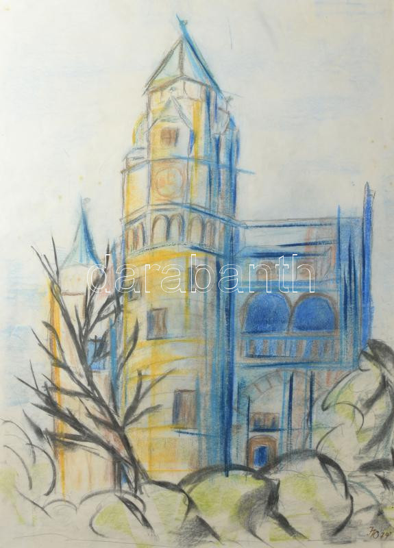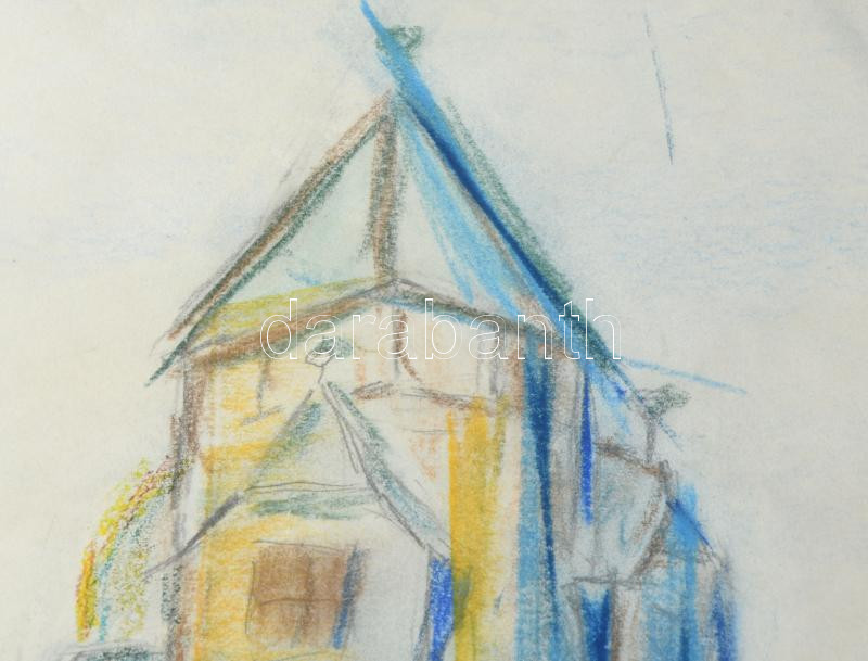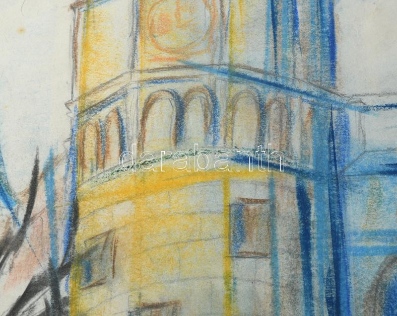 Azonosítatlan jelzéssel: Torony. Pasztell, papír, jelzett, 56x41 cm