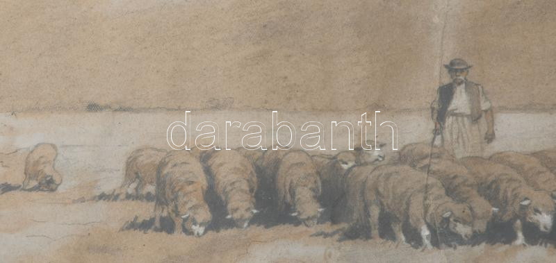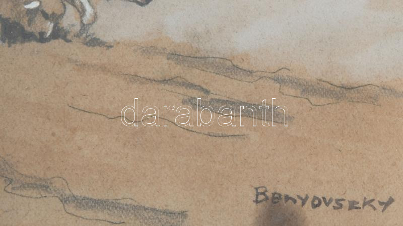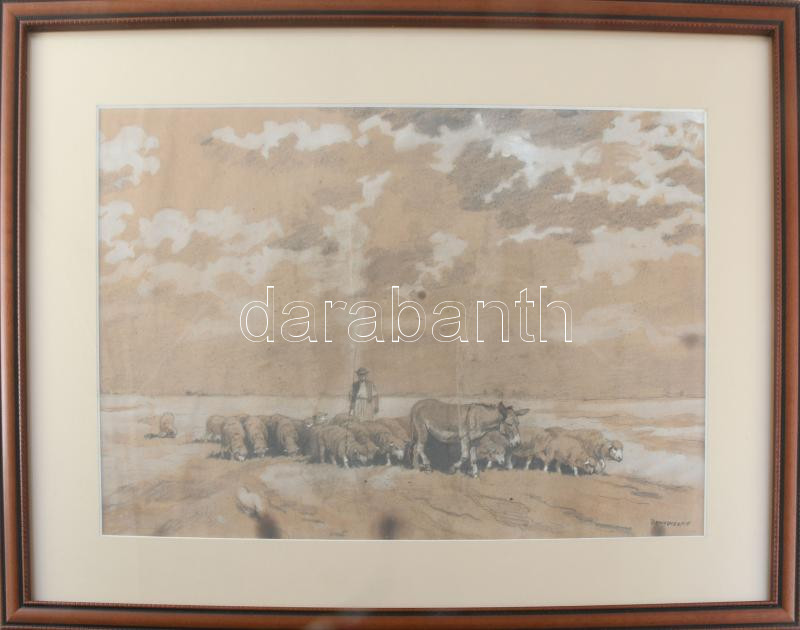 Benyovszky jelzéssel: Birkapásztor. Vegyes technika, papír., jelzett, Üvegezett keretben 27x40 cm