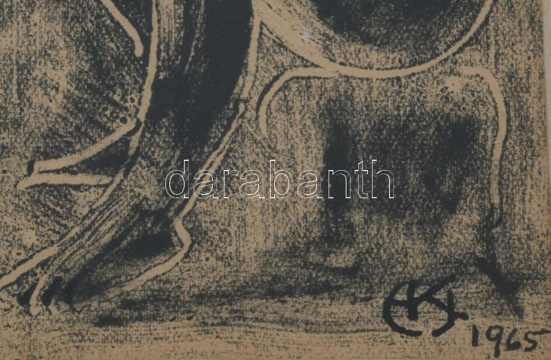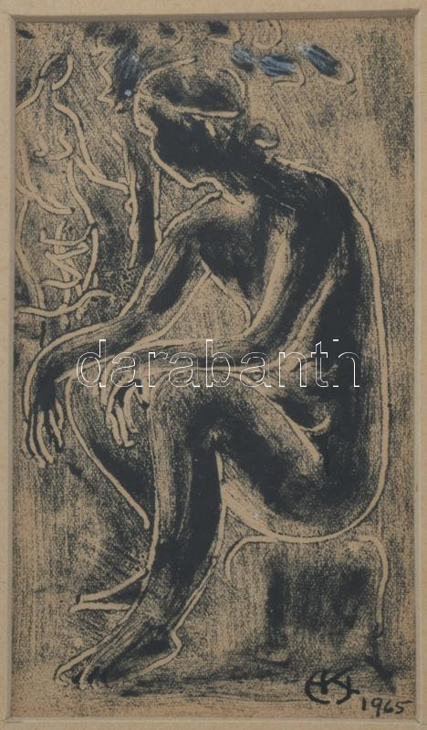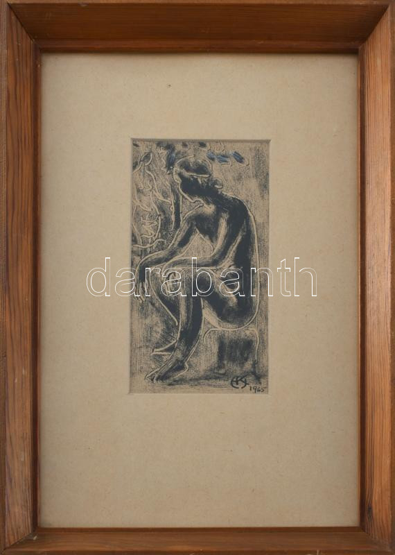 EKJ jelzéssel: Ülő akt. Monotípiaa, papír, 17x8 cm. Üvegezett fakeretben