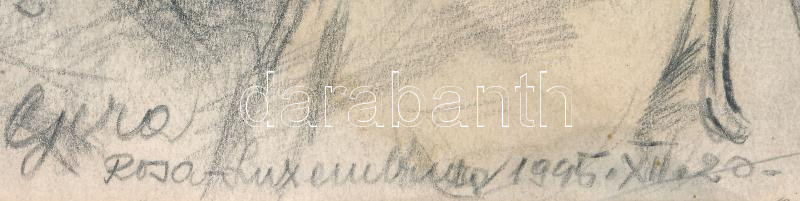 Gera jelzéssel (Gera Gyula?): Férfiportré Rosa Luxemburg felirattal, 1945. Ceruza, papír. Lapszéli szakadással. Törésekkel. 18x13 cm