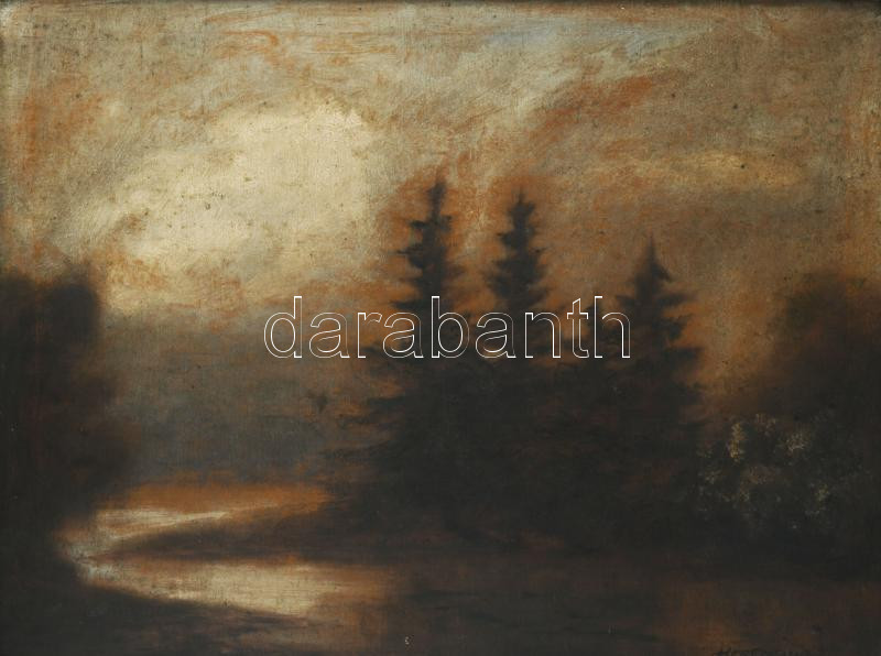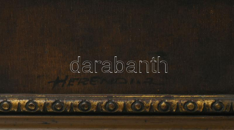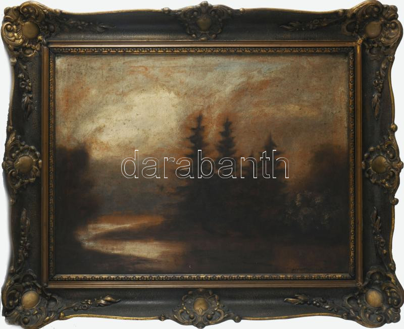 Herendi jelzéssel, XX. sz. első fele: Vízparti fények. Olaj, vászon. Dekoratív fakeretben. 45x59 cm.