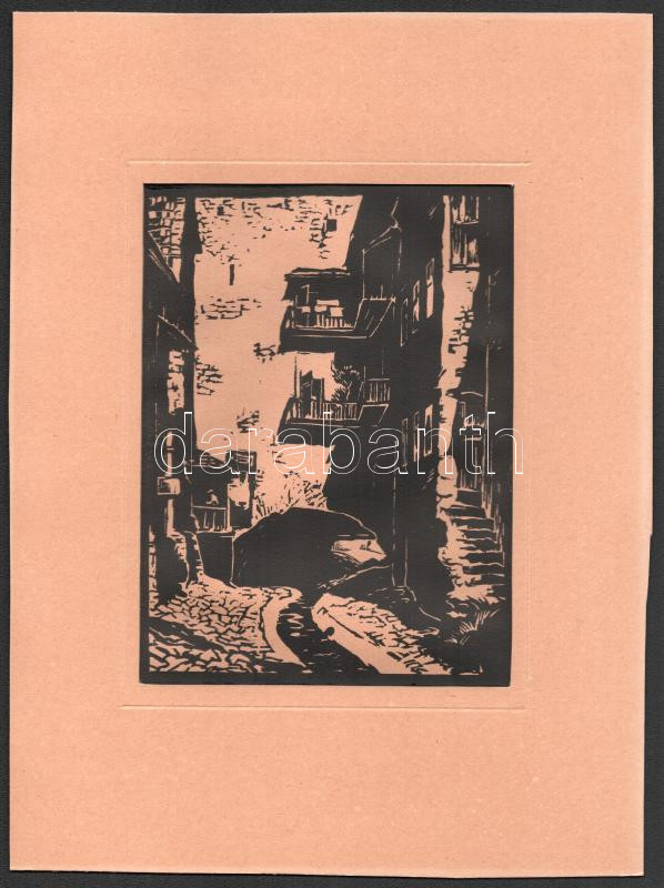 Jelzés nélkül: Ikvaparti házak, Sopron. Fametszet, papír. Paszpartuban. 18×13,5 cm