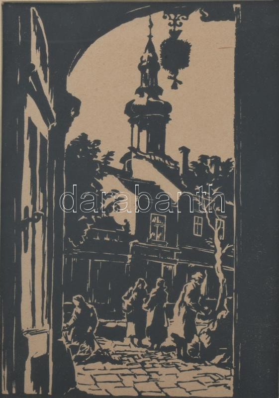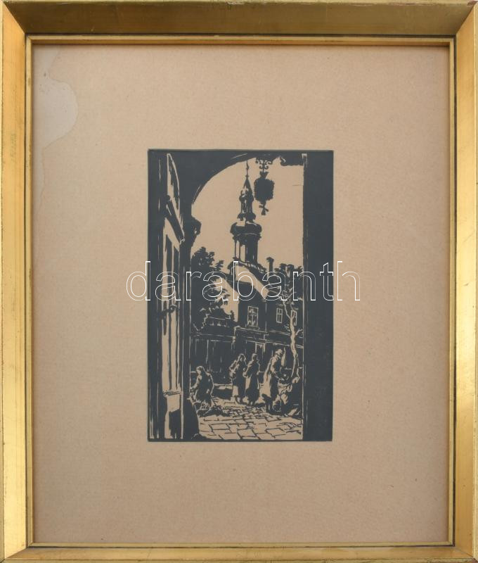 Jelzés nélkül: Soproni részlet. Fametszet, papír. Üvegezett fakeretben. 22,5×14 cm