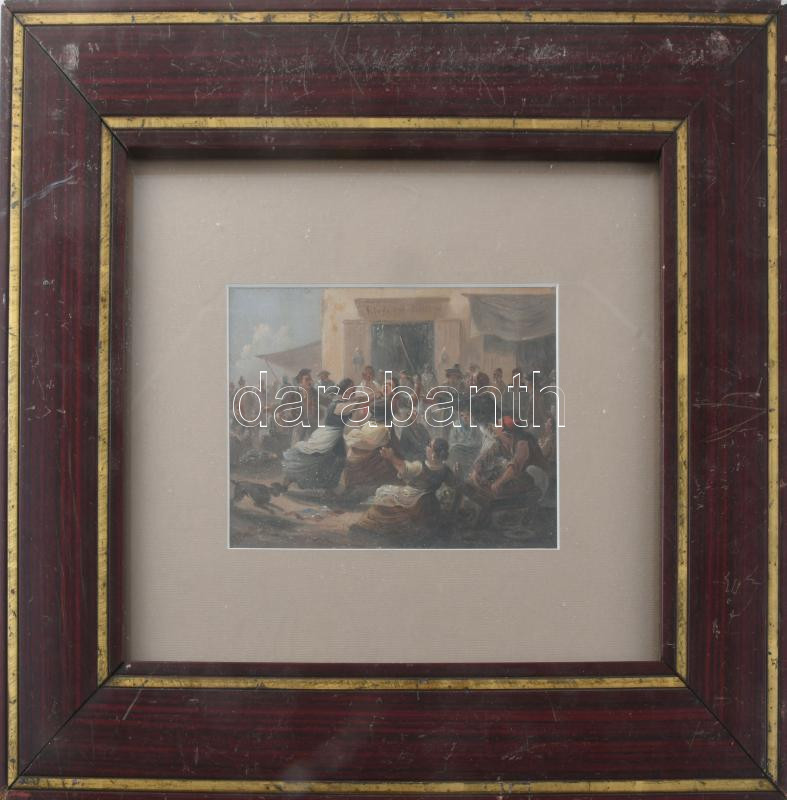 Jelzés nélkül: Vásári perpatvar. Olaj, karton 12x18 cm masszív, üvegezett keretben kis felületi sérülésekkel