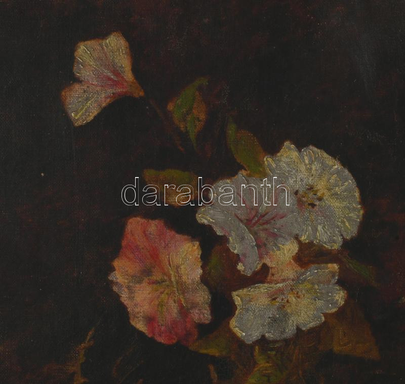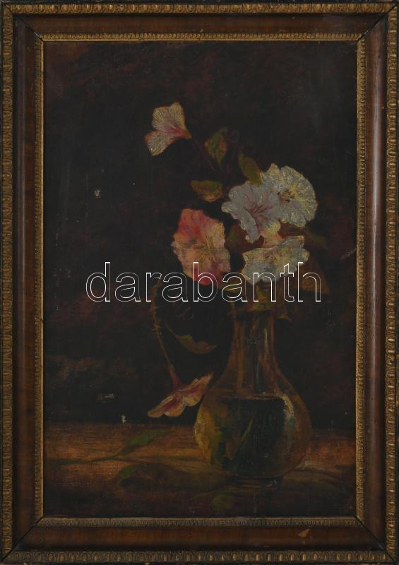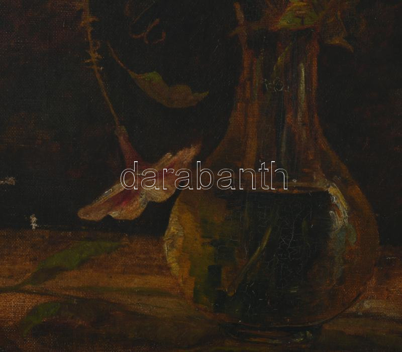 Jelzés nélkül, feltehetően XIX. sz. vége/XX. sz. eleje: Virágok. Olaj, vászon. Apró sérülésekkel. Dekoratív, kissé sérült fakeretben. 42×28 cm