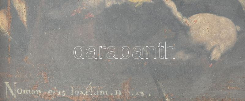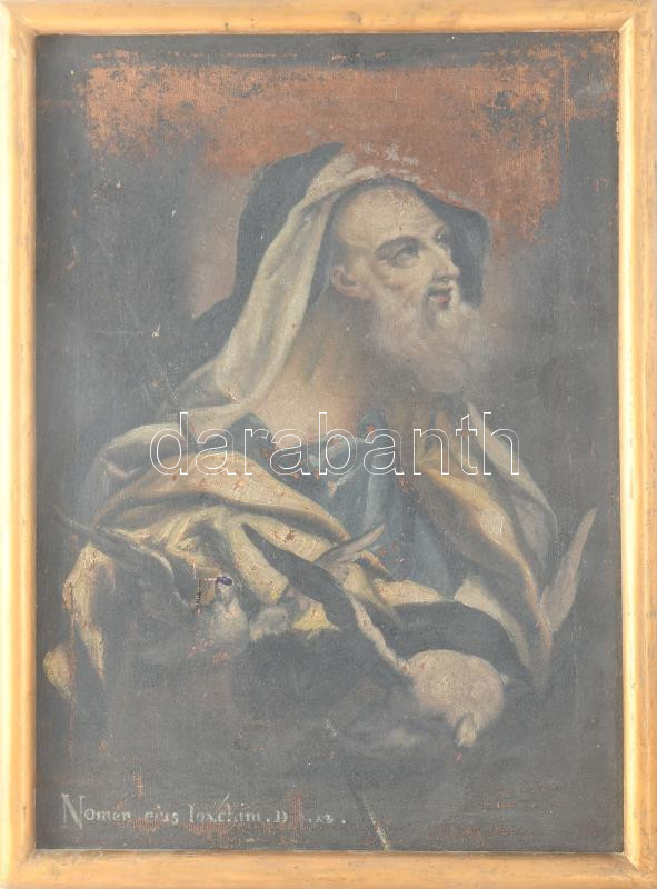 Jelzés nélkül, feltehetően XVIII. sz. festő: János apostol. Olaj, vászon. Sérült. Fakeretben 40x29 cm