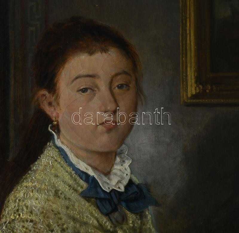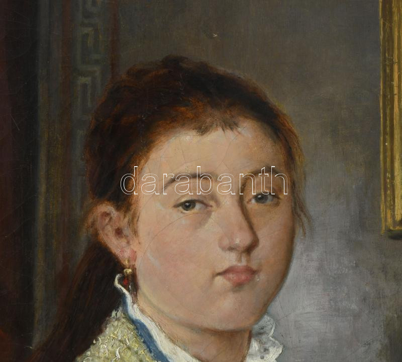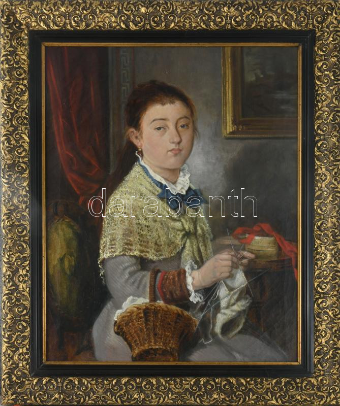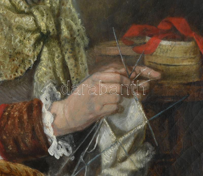 Jelzés nélkül:...grófnő (horgoló nő). Olaj, vászon, Dekoratív keretben. 65x50 cm