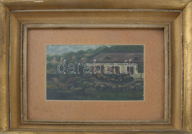 Kiss G. jelzéssel: Udvar állatokkal. Olaj, karton, jelzett, üvegezett keretben 14x20 cm