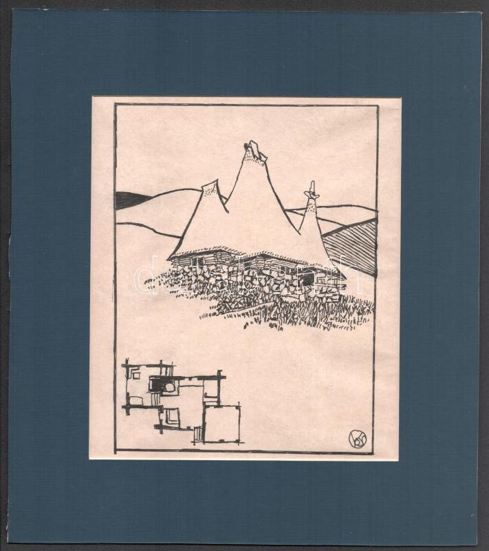 Kós jelzéssel: Ház terve. Tus, papír. Paszupartuban. 21x16 cm.