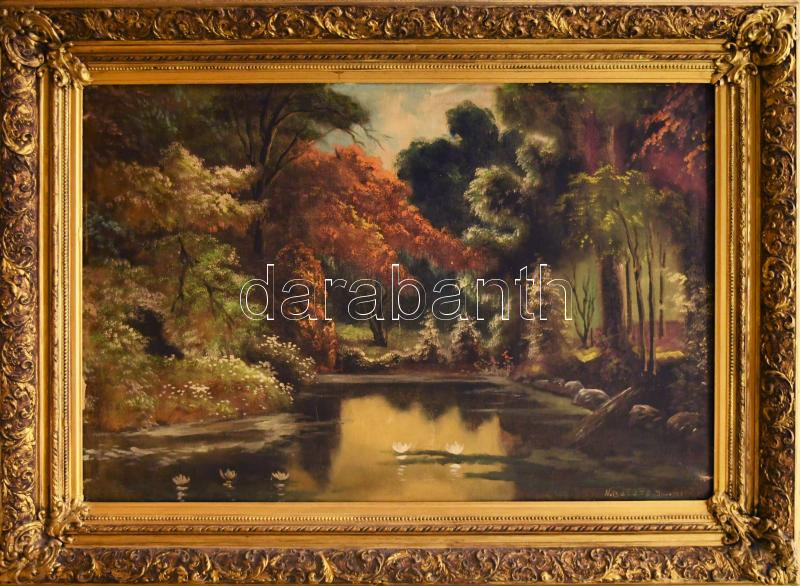 N. Balázs Imre jelzéssel: Vízparti táj. Olaj, vászon. Dekoratív, kissé sérült fakeretben. 63x96 cm. KIZÁRÓLAG SZEMÉLYES ÁTVÉTEL, NEM POSTÁZZUK! / ONLY PERSONAL COLLECTION AT OUR OFFICE!