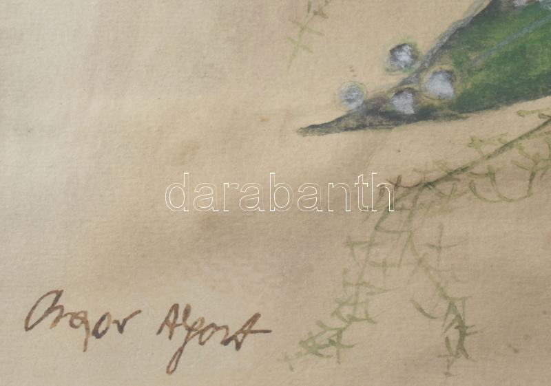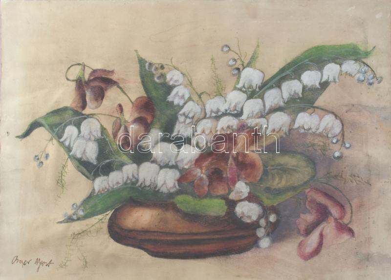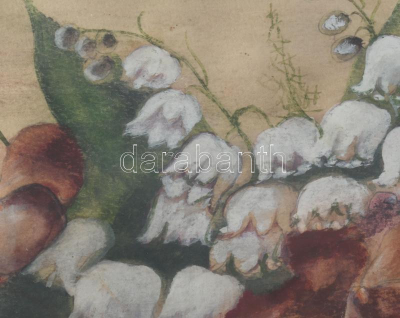 Olvashatatlan jelzéssel: Csendélet. Vegyes technika, papír. Dekoratív, üvegezett fakeretben. 32×47 cm