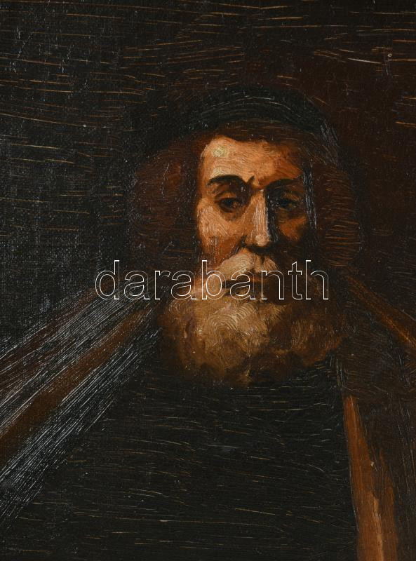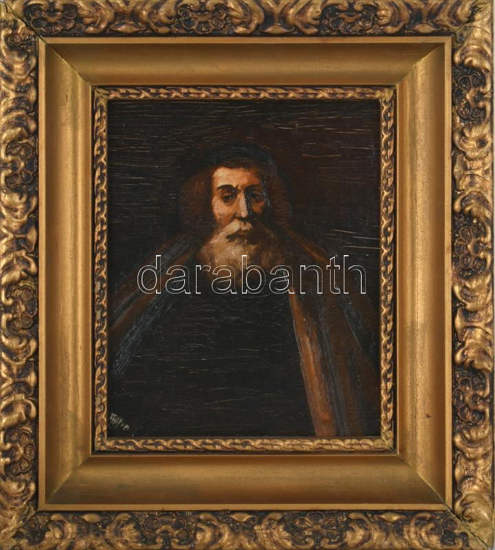 Olvashatatlan jelzéssel: Szakállas férfi portréja. Olaj, karton. 23x19 cm. Dekoratív, sérült fakeretben.