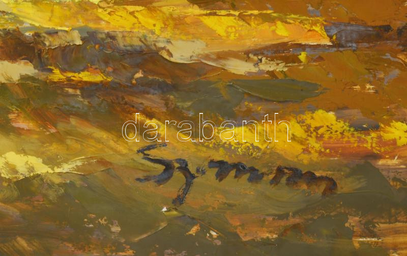 Olvashatatlan jelzéssel: Vízparti fények. Olaj, farost. Fakeretben. 62x82 cm.