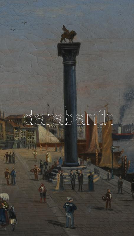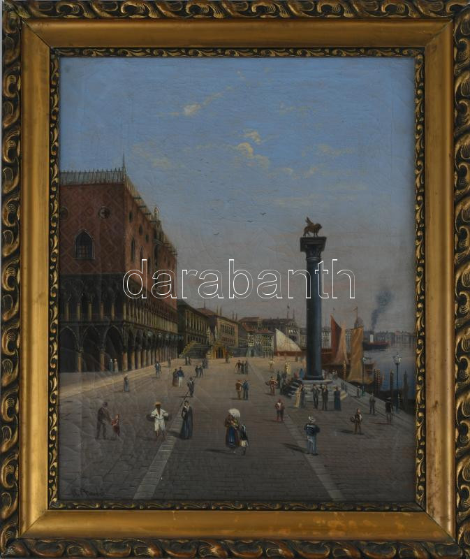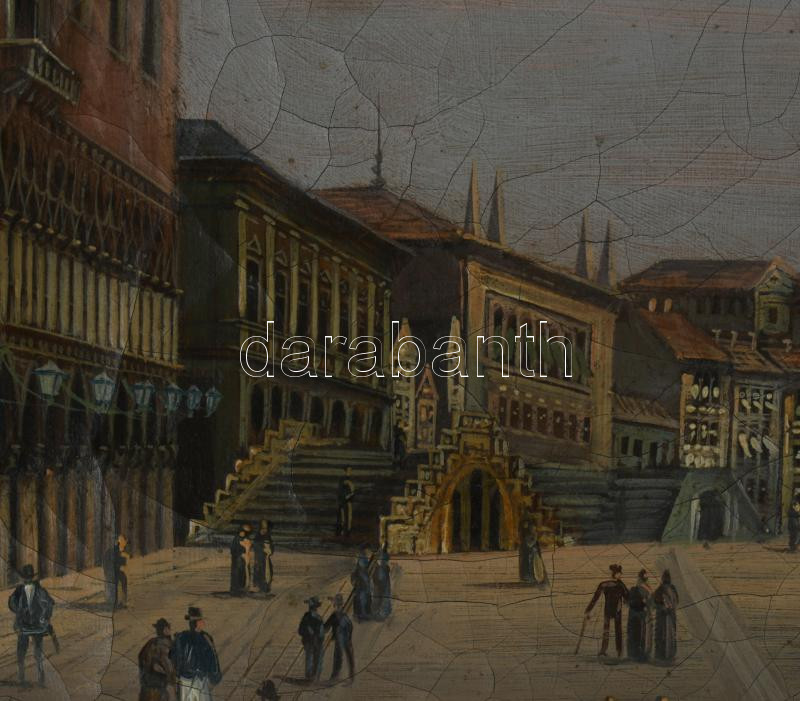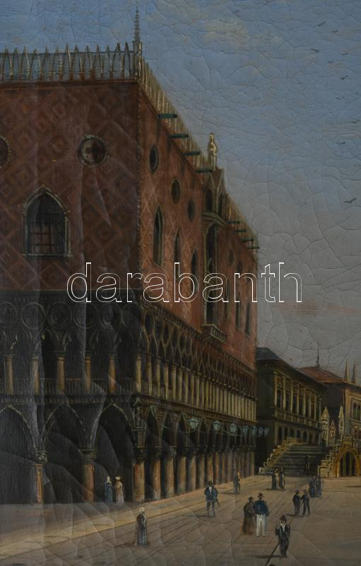 Olvashatatlan jelzéssel, feltehetően XIX. sz. festő: Velencei részlet. Olaj, vászon, jelezve jobbra középen, 52,5×42 cm. Dekoratív, kissé sérült fakeretben.