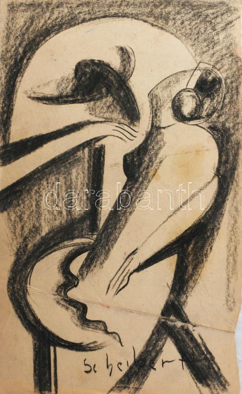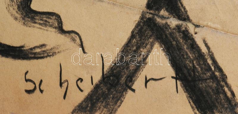 Scheiber jelzéssel: Kalapos alak. Szén, papír, gyűrődéssel, 39×24 cm