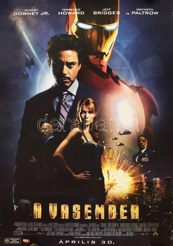2008 A vasember, Robert Downey Jr., Jeff Bridges, filmplakát, papír, feltekerve, kisebb lapszéli szakadásokkal, 98x68 cm