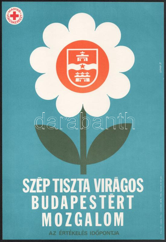 Gönczi Béla (1934-): Szép tiszta virágos Budapestért mozgalom, 1980. Plakát, papír. Jelzett a plakáton. MVK. OVB. 40,5x27,5 cm.