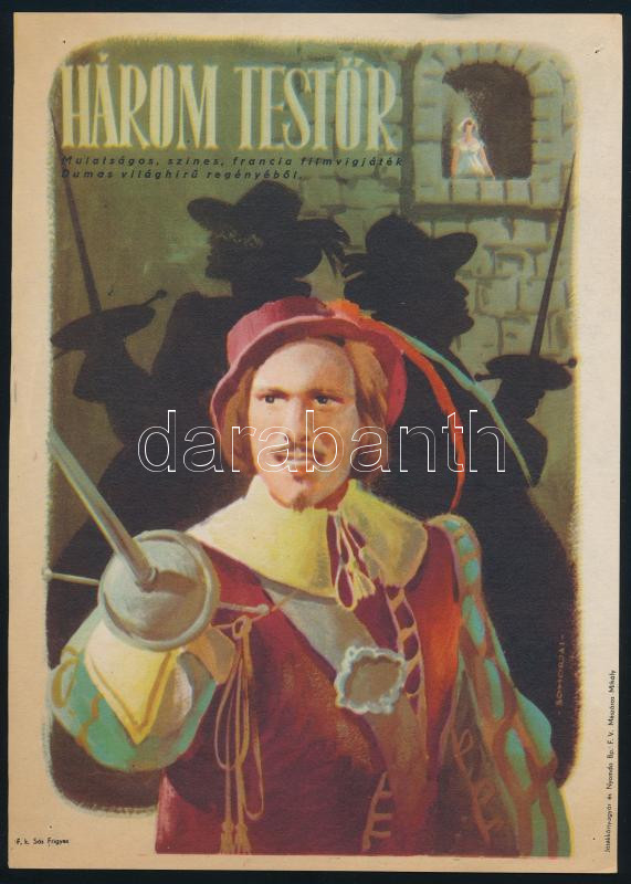 cca 1950-1960 A három testőr, kisplakát, villamosplakát, szign. Somorjai, 24x17 cm