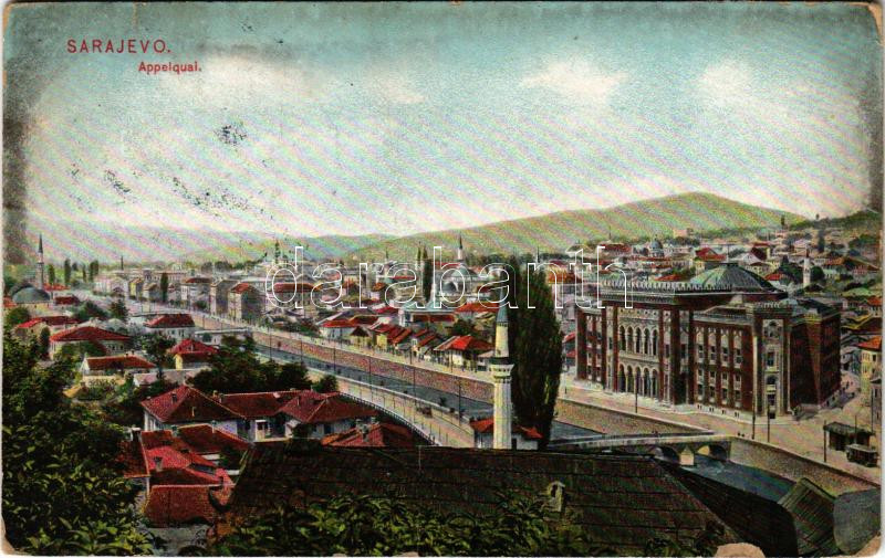 Sarajevo, Appelquai / quay, tram, mosque (tear)
