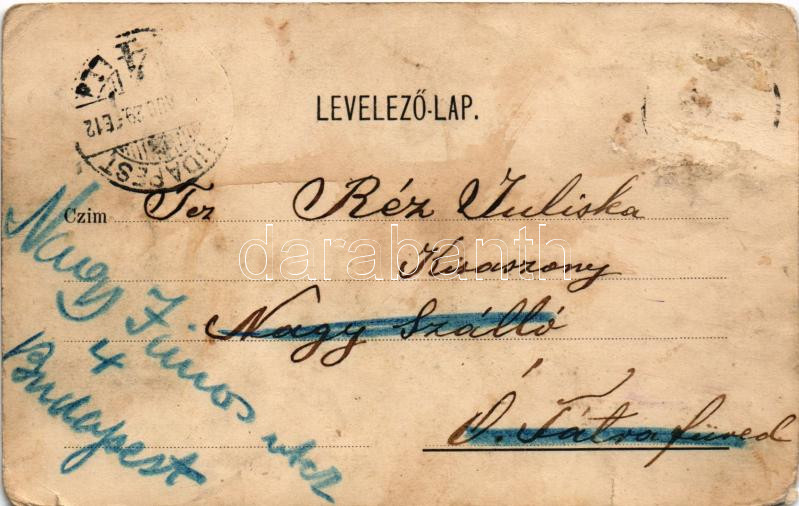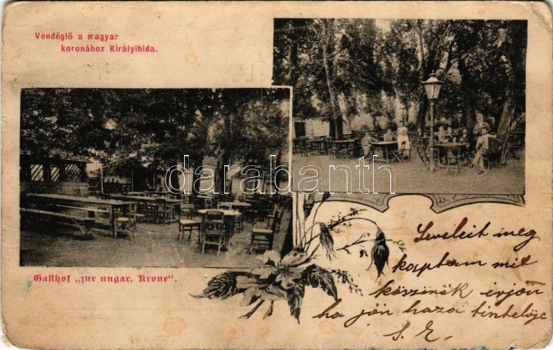 Királyhida, Bruckújfalu Tábor, Brucker Lager, Bruckneudorf; Vendéglő a Magyar Koronához, kert vendégekkel és harmonikással / restaurant, garden with guests and accordionist. Art Nouveau, floral (EM)
