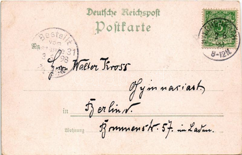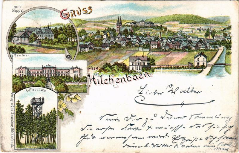 1898 Hilchenbach, Stift Keppel, Seminar, Giller Thurm. Verlag v. Otto Bruecher Art Nouveau, floral, litho (cut)